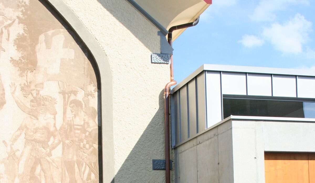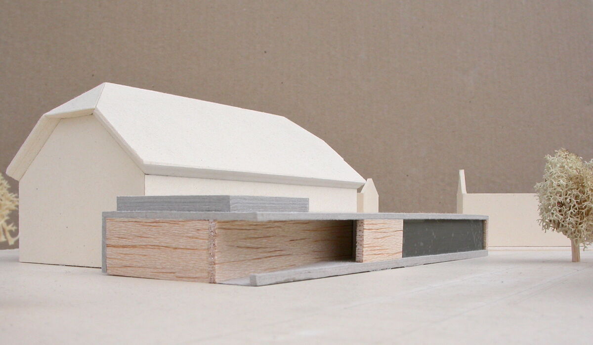 Das Bauprojekt besteht wie im Wettbewerbsprojekt vorgeschlagen aus einem einfachen, klarlinig strukturierten Annexbau mit einer Holz- Betonfassade. Ein räumlich attraktives Foyer gewährt mit einem grossen Fenster Ausblicke Richtung Dorf. Eine Nebenbühne im neuen Anbau erweitert die Bühne, welche komplett erneuert und modernisiert wird. Garderoben, WC-Anlagen, Lager und Nebenräume befinden sich im Kellergeschoss des neuen Anbaus.