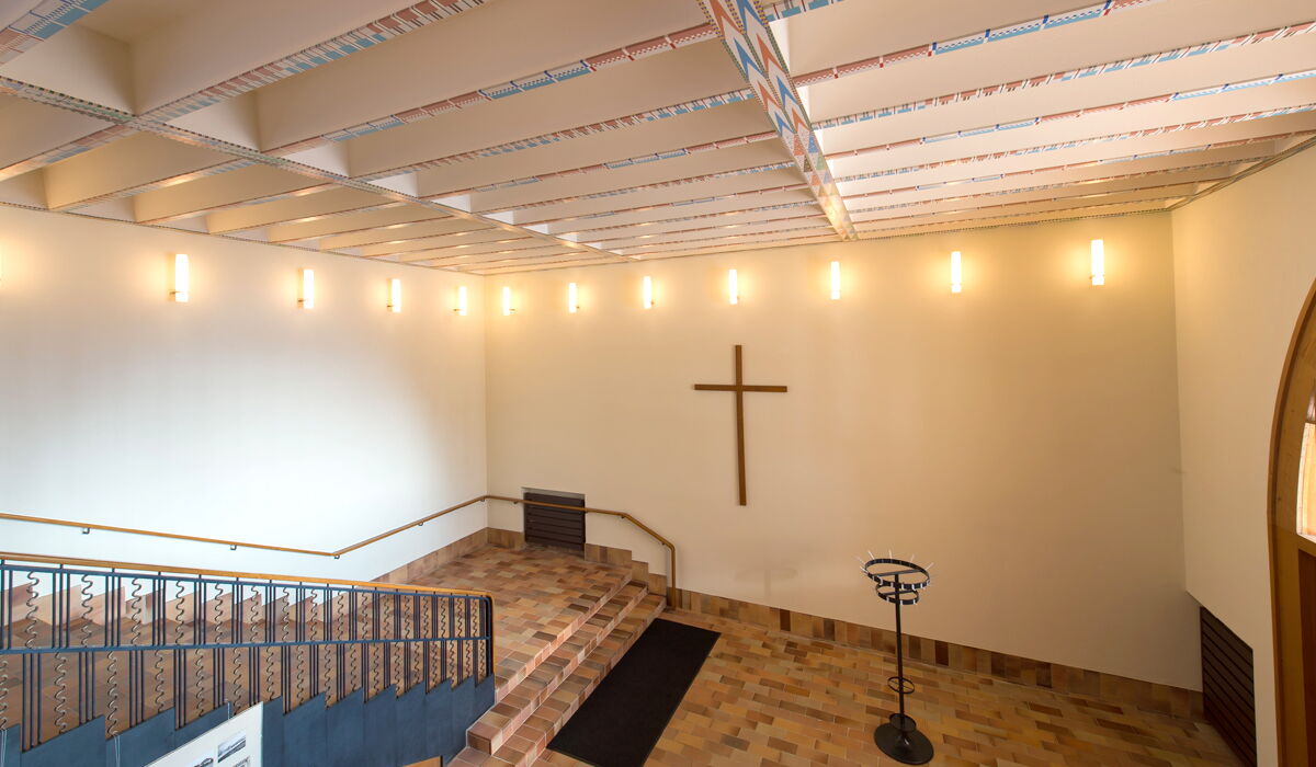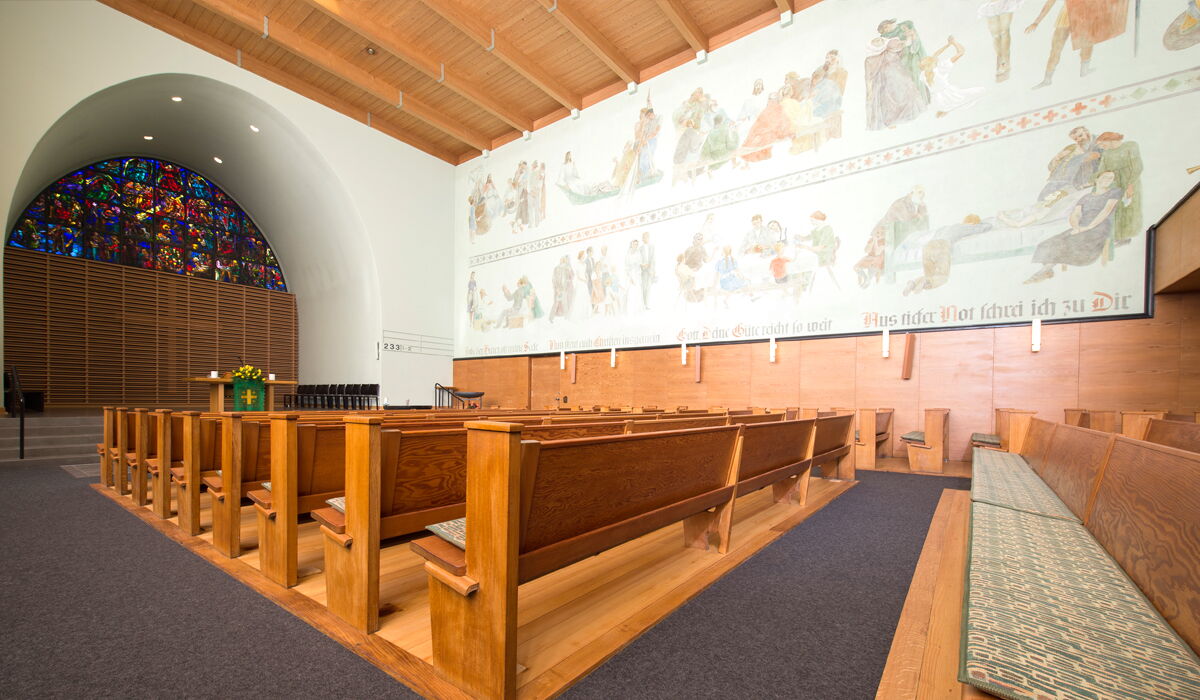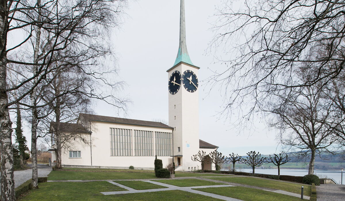 Die 1934-35 im "Steineggli" westlich des Pfarrhauses errichtet Kirche wurde gebaut von Armin Meili, einem der grossen Architekten des 20. Jahrhunderts (Direktor der Schweiz. Landesausstellung „Landi“ 1939). Der inkl. Innenausstattung weitgehend in seiner ursprünglichen Form erhaltene Kirchenbau steht seit 2004 unter integralem kantonalem Denkmalschutz und zeichnet sich aus durch eine angepasste moderne, auf die damalige Baukultur Bezug nehmende Architektursprache. Flach geneigte Satteldächer und schlichte Kunststeingliederungen vereinheitlichen die verputzten, klar strukturierten Baukuben. Turm mit Spitzhelm und Engelsbekrönung. Die grosszügige Treppenhalle bewahrte ihr ursprüngliches Erscheinungsbild samt den Klinkerböden und der gemusterten Schablonenmalerei an der kassettierten Decke. Der dringende Sanierungsbedarf der Kirchenheizung und ein in die Jahre gekommener Pavillon wurden als Anlass genommen die Kirche nach einer gesamtheitlichen Betrachtung fachgerecht zu restaurieren und umzubauen. Alle Arbeiten in enger Zusammenarbeit mit der Kantonalen Denkmalpflege.