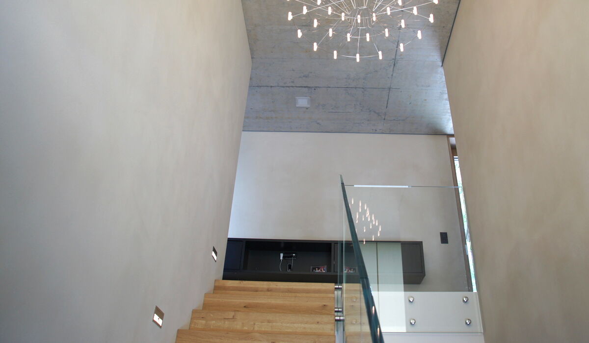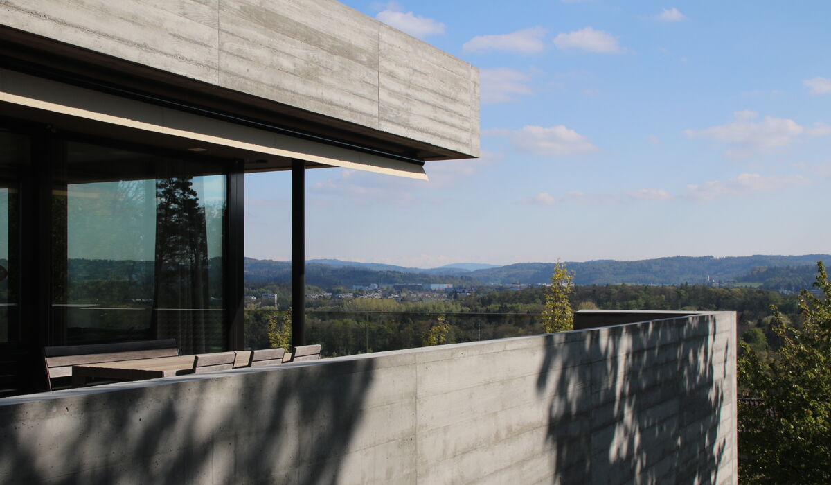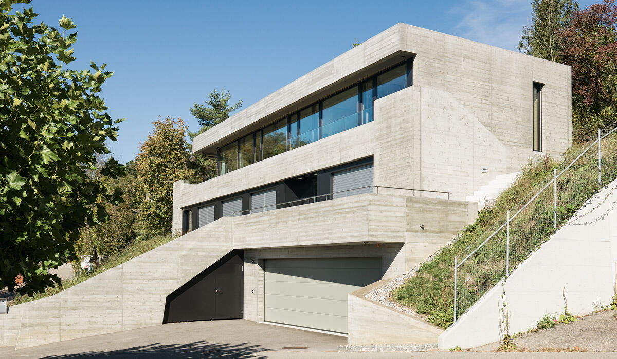 Das grosszügig gestaltete Einfamilienhaus steht an prominenter Hanglage am Jurasüdfuss mit Blick über das Aaretal und Weitsicht bis zum Alpenpanorama. Die präzise Setzung des Gebäudekörpers im Hang verstärkt die aussergewöhnliche Lagequalität. Eine skulptural gestaltete Aussentreppe führt entlang dem natürlichen Hangverlauf zum Haupteingang im Mittelgeschoss.